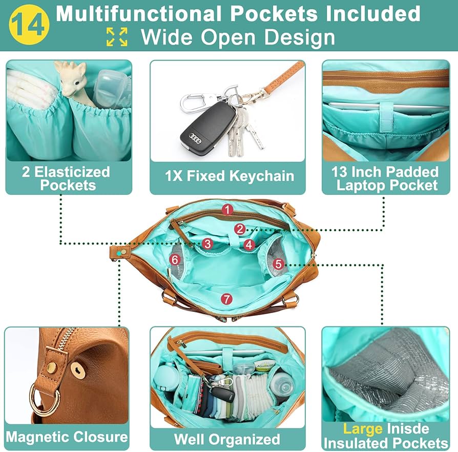 Mochila De Pañales De Cuero Con 17 Bolsillos Y Cambiador Jm