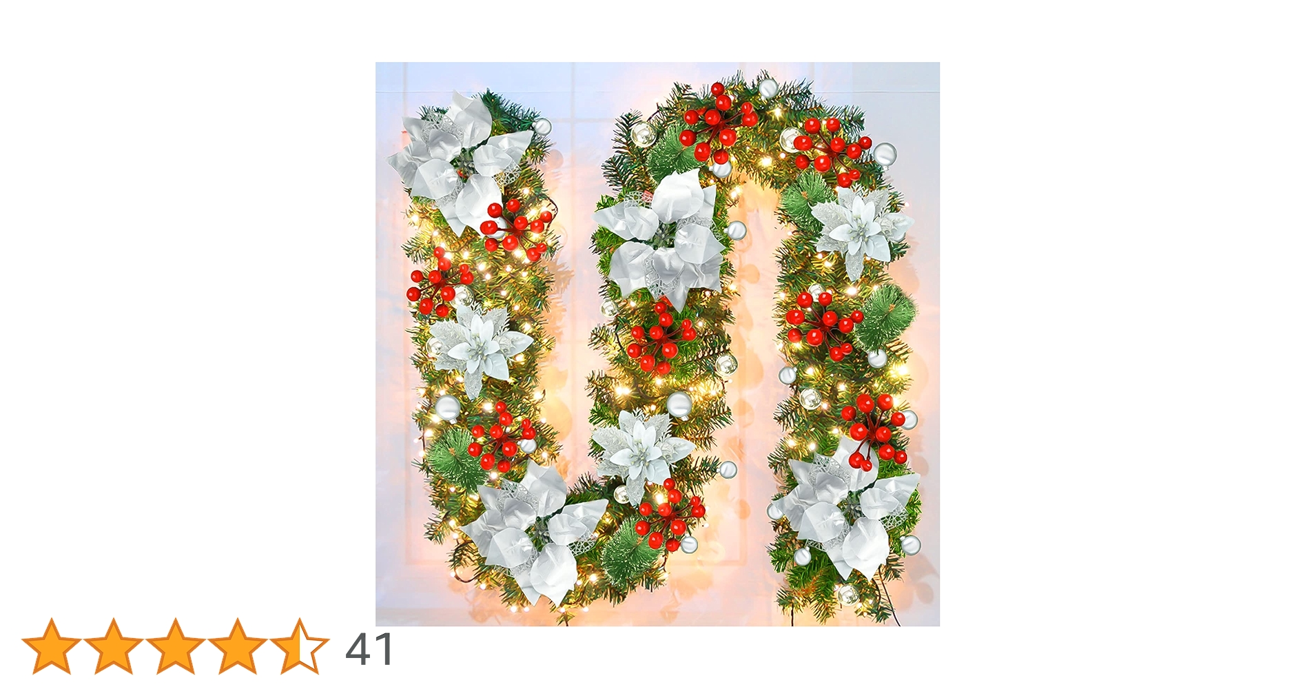 Guirnalda de Navidad de 9 pies con 30 luces LED, guirnalda de Navidad artificial preiluminada con flores plateadas, bolas Perfecto para fiestas de Navidad, bodas, festivales. Decoraciones navideñas, guirnalda de bolas de colores, metros, cifrado... Guirnalda de Navidad perfecta para tus puertas, escaleras, chimeneas y ventanas Esta guirnalda de Navidad iluminada cuenta con 200 ramas, 9 bayas rojas, 5 ramas de pino blanco, 7 flores plateadas y 30 bolas plateadas, creando un ambiente animado para tu decoración navideña y a juego con cualquier decoración de Navidad existente. Iluminación navideña, solo necesita 3 pilas AA5., 🎄【Amplio uso】La decoración perfecta para Navidad. Guirnalda de Navidad, ratán verde con decoraciones de flores rojas y luces LED a pilas para el hogar Categoría: Hogar y Cocina, Decoración de Temporada, Coro… Tamaño perfecto: la guirnalda de Navidad mide aproximadamente 2,7 m. Navidad Decoración Decoración Navideña De Ratán Para Ventanas De Centros Comerc Decoración Exterior Navidad Cola de Navidad césped ratán caucho suave simulación verde decoración... Especificaciones: Tipo: Guirnalda de Navidad. Alimentación: 3 pilas AA (no incluidas)., Longitud: 2,7 m. Incluye una variedad de dispositivos, como cono de pino y fruta roja, etc. 🎄【Material de alta calidad】Hecho de material de PVC respetuoso con el medio ambiente y prevención de incendios, efecto esponjoso para decorar tu hogar, patio y jardín en Navidad. Vid hecha a mano para visuales y sensación realistas, añade un ambiente festivo suave a tus muebles. Decoración navideña de ratán, adornos colgant de lujo Hay una variedad de bayas, piñas, bolas, flores y hojas entrelazadas en la guirnalda, algunas con acabados de purpurina, duraderas y se pueden utilizar durante mucho tiempo, perfectas para interiores o exteriores. Material: PVC, alambre de cobre y LED. Color de iluminación: Blanco cálido. Este artículo viene en forma plana, ajusta la rama para que tenga una hermosa forma.