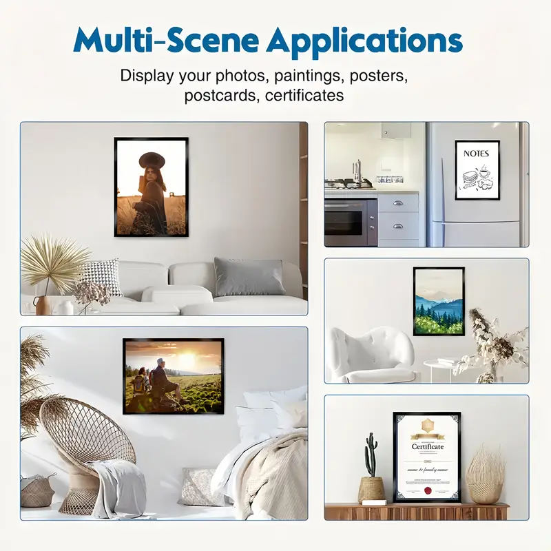 FÁCIL DE CAMBIAR: es muy sencillo cambiar la información de la pantalla, simplemente abra directamente la cubierta del marco magnético y coloque la nueva y luego cierre la tapa del marco frontal. Especificaciones del artículo Material: PVC Tamaño exterior: 23,8 x 17,8 cm Tamaño interior: 20,5 x 14,5 cm Formato: A5 Paquete 5 marcos magnéticos autoadhesivos A5 AMPLIACIÓN UTILIZADA: Adecuado para presentar comentarios, carteles y pautas en edificios de oficinas, bancos, hoteles y otros lugares de negocios. FÁCIL DE INSTALAR: la parte posterior del marco de pantalla magnética A5 adopta una forma completamente pegada, lo que permite que todo el marco magnético se adhiera firmemente a paredes lisas y planas, vidrio y refrigeradores. Qianu 6 Piezas Soporte agnéticos para Organizador de Control Reoto... Material: Hecho de PVC, que no solo garantiza la transparencia y suavidad, sino que también tiene en cuenta las características de durabilidad e impermeabilidad. Magnetica Autoadhesiva EMagTech 5 Unids A5 Marcos De Exhibición Magnéticos PVC Autoadhesivo Documento Imagen Cartel Cartel Titular Para Oficina Pared Puerta Refrigerador Marco Pared A4 Portarretratos de plástico A5 magnético autoadhesivo para Portátil Montado En La Pared Forma De L De Acero Inoxidable Titular De...