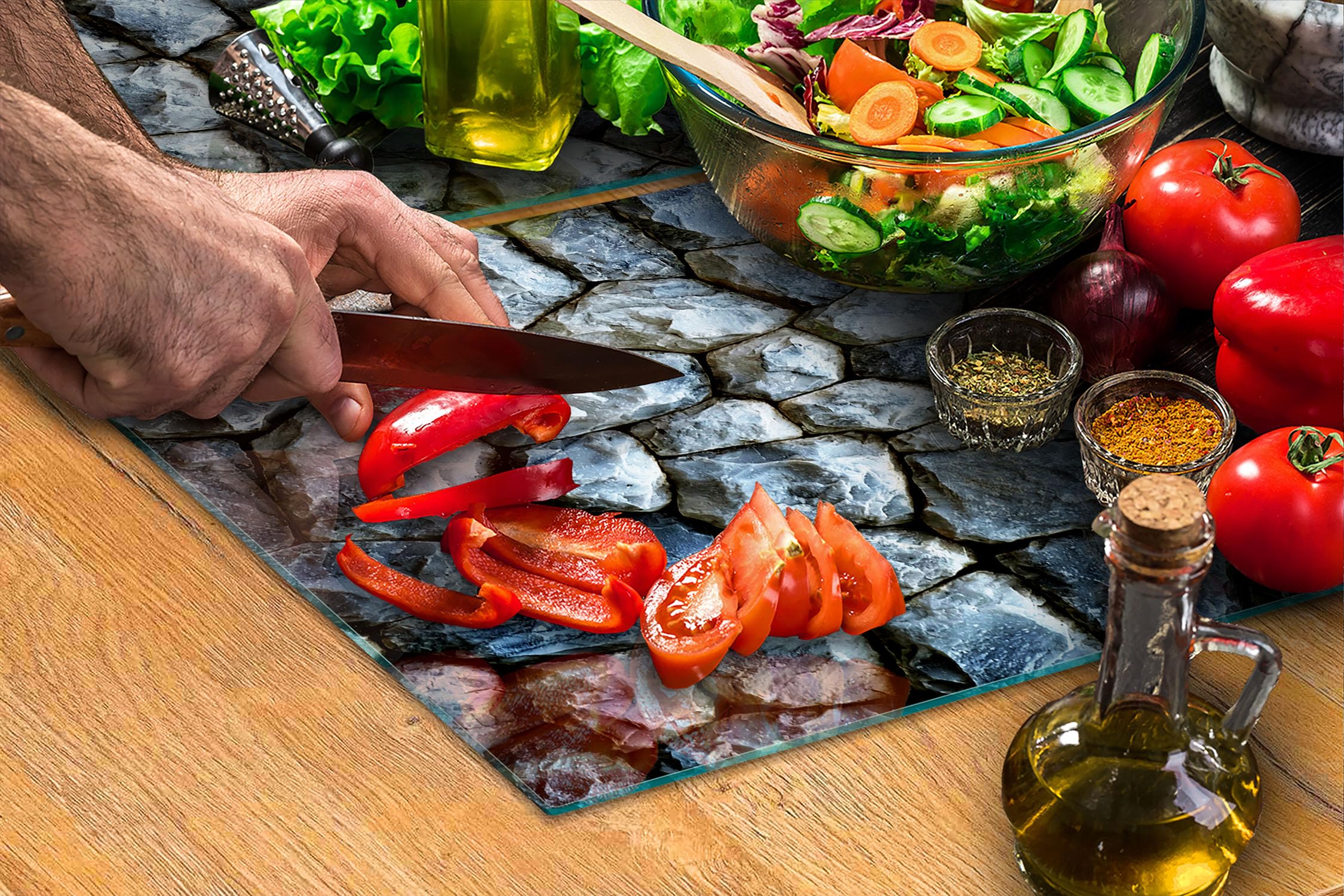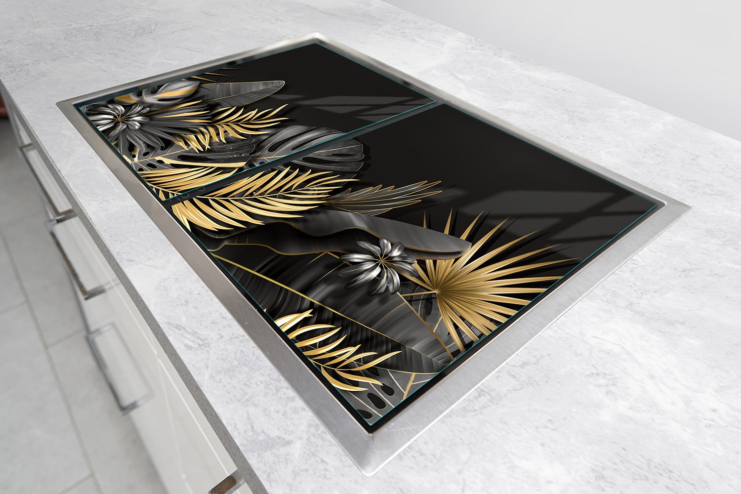 TMK ArtDeko Tabla De Cortar Decorativa De Cristal Templado Y Cubre Vitro, Placa Protectora De Vitrocerámica 100 X 52 Cm 2 Piezas, Para Inducción, Protección Contra Salpicaduras, Piedras