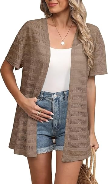 Protección solar transpirable: nuestros cárdigans ligeros están diseñados para proporcionar protección solar transpirable, perfectos para las noches de verano y para la oficina. Blazer Mujer Verano Cárdigan Ligero De Verano QIXING Para Mujer - Transpirable Y Con Protección Solar - Manga Corta Para Oficina O Playas Chaqueta Mujer Ocasión: estos cárdigans para mujer son adecuados para cualquier ocasión. Cómodo y agradable al tacto: la tela es suave con la piel, lo que garantiza una experiencia de uso cómoda y agradable. No son demasiado pesadas ni demasiado calientes, lo que las hace ideales para el verano y proporcionan la cantidad perfecta de cobertura. La tela se elige para ofrecer protección contra los rayos del sol mientras te mantiene fresco y cómodo. Ya sea como chaleco o como cubierta para un vestido, nuestros cárdigans ofrecen el equilibrio perfecto de estilo y comodidad, lo que los convierte en un complemento imprescindible para cualquier armario de verano. El material agradable al tacto garantiza una experiencia de uso suave y agradable, por lo que es ideal para mujeres que buscan opciones de ropa versátiles y modernas. Uso versátil: estos kimonos son perfectos como cubierta para tops o vestidos, y se pueden llevar en la oficina o en las noches de verano. Envuélvete en la máxima comodidad y estilo con nuestros cárdigans ligeros QIXING para mujer. Protección solar muy alta: Tejido certificado UPF 50 frente a los rayos solares UVA y UVB según la norma EN 13758-1. · Comodidad óptima: algodón mercerizado... Cárdigan Lomon Para Mujer, Primavera Y Verano, Manga Corta, Tejido A... Camseta de punto casual de verano para mujer, de cuello redondo, manga