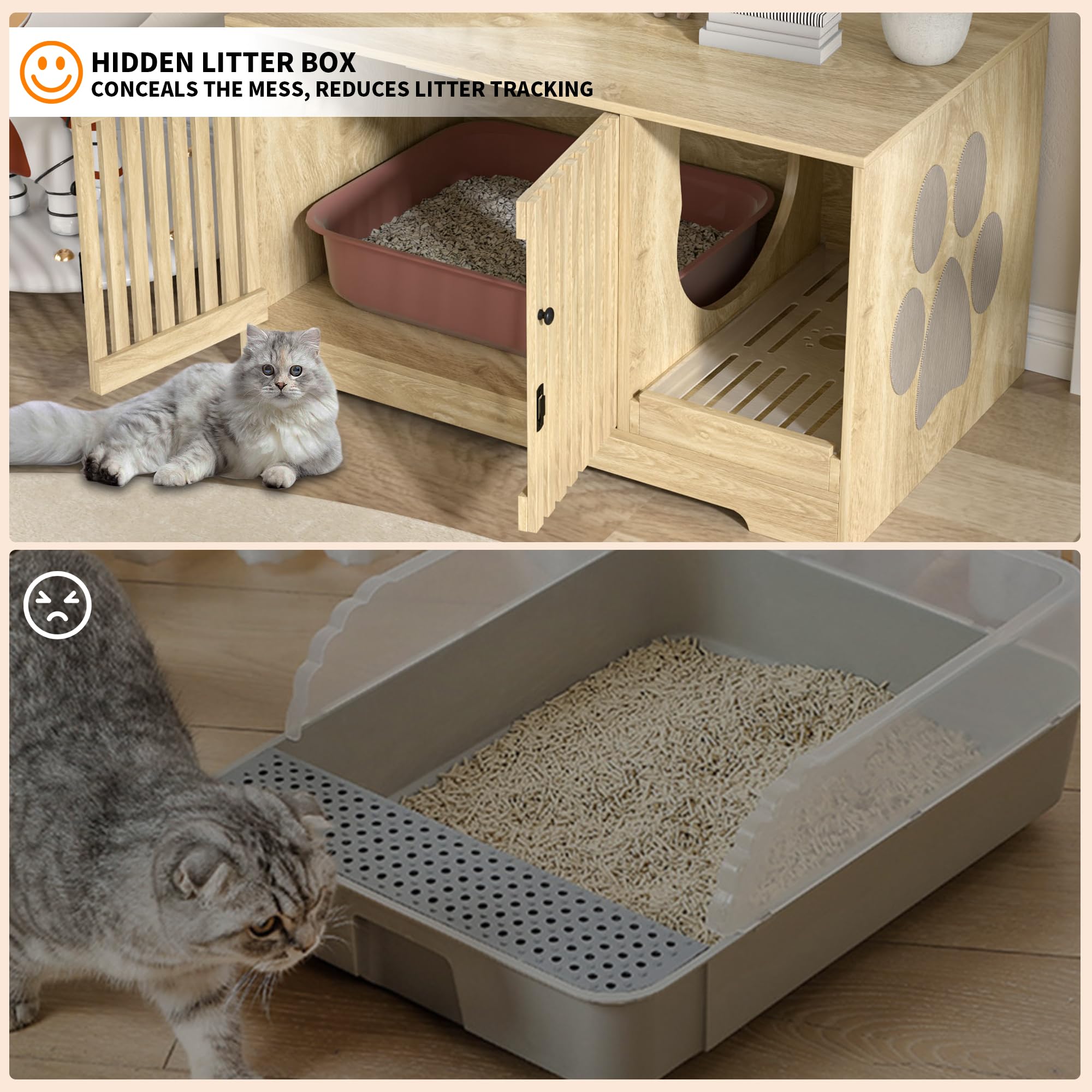 Mueble Multifuncional 3 en 1 para Gatos Comodidad y privacidad: este mueble oculto para gatos cuenta con un estante de almacenamiento, proporcionando un espacio seguro y cómodo para tu gato. Color: gris, marrón rústico, blanco. Lee la descripción para ver todas las especificaciones del producto.SKU: B0F6MV5T5WTitulo : caja de arena para 2 gatos, caja de arena oculta de madera grande de 47.2 pulgadas, mueble para 2 cajas con puertas de sisal y cajones deslizantes, soporte de tv para casa de gatos interior, colorDescripción : No hay Descripción Disponible Marca: Peakpursuit======= CARACTERISTICAS DEL PRODUCTO... Su aspecto elegante combina perfectamente con varios estilos de interiores --Diseño de tapa abatible: la caja de arena abatible para gatos con una alfombrilla de arena simplifica la limpieza, recoge y aspira fácilmente sin complicaciones. Esta caja de arena cerrada soporta el peso de un adulto, permaneciendo estable incluso con gatos más grandes. Aprieta los tornillos después de colocar toda la pieza en su posición. Dimensiones del paquete: 72,5 x 59,5 x 20,5 cm. Unipaws Caja De Arena Abierta Para Gatos, Ueble De Baño Para Casa De Nota: La caja de arena no está incluida. El estante de almacenamiento abierto es perfecto para guardar juguetes o latas para gatos, mientras que la puerta lateral ofrece un fácil acceso sin necesidad de que los gatos mayores salten o trepen. Muebles modernos y elegantes: este baño para gatos cuenta con un elegante diseño de panel acanalado que añade interés visual, por lo que es una adición artística a la decoración de tu hogar. --Fácil montaje: esta caja de arena para gatos viene con instrucciones claras y bien ilustradas, piezas numeradas, marcas laterales y todas las herramientas necesarias, lo que hace que el montaje sea muy fácil Esta versátil pieza sirve como casa para gatos y como banco de juegos, asegurando que tu gato se sienta seguro y feliz., Especificaciones: Tamaño: 33., 8 x 19., 6 x 24., 2 pulgadas. El cojín extraíble funciona como una acogedora sala de estar o como un práctico estante de almacenamiento con una valla. Aviso: Por favor, mida el tamaño de la caja de arena de los gatos antes de la compra. SucceBuy Caja de arena para gatos para 2 gatos, mueble de caja Dimensiones totales: 120 x 52 x 65 cm Este mueble abatible simplifica la limpieza, lo que te permite recoger y aspirar fácilmente con un mínimo de molestias. Amplio Espacio de Almacenaje El mueble armario multifuncional para gatos no sólo se puede utilizar como recinto de caja de arena para gatos o casa para gatos para ocultar cajas de arena o camas para gatos, sino también como soporte de TV, mesa de café o mesa auxiliar. Tamaño del compartimento: 41 x 50,5 x 51 cm El recinto y la alfombrilla de arena controlan la arena dispersa, mientras que la puerta lateral evita que otras mascotas ensucien Contenido del paquete: 1 caja de arena para gatos., 1 cojín., 1 alfombrilla de arena., Bolsas de herramientas., 1 guía de montaje. El armario de madera para areneros de gatos está diseñado con 2 compartimentos que permiten que 2 gatos utilicen el baño simultáneamente, y cada compartimento mide 41 x 50,5 x 51 cm.