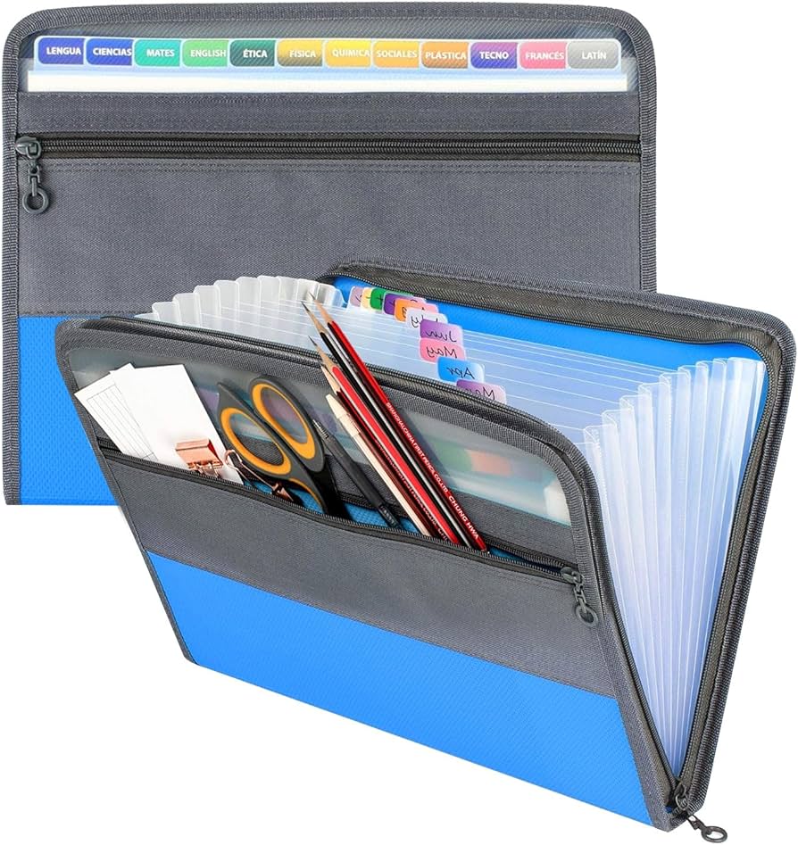 Las etiquetas de colores para escribir están incluidas en el paquete para una identificación rápida del contenido de la carpeta. Un bolsillo con cremallera en la parte delantera es perfecto para guardar bolígrafos, resaltadores y otros artículos diversos de uso frecuente. Ocasiones aplicables: el organizador de documentos de almacenamiento clasificado es adecuado para el hogar, oficina, escuela y viajes, simple y elegante, haciendo que el escritorio esté limpio y ordenado. Se adapta a papeles de tamaño A4/carta. Favorecido por enfermeras, profesionales de negocios, profesores, abogados, estudiantes, hombres, mujeres, niñas, niños. Mucho más fácil de llevar de un lugar a otro y menos probable que pierda algo. Puede almacenar varios artículos como archivos, cartas, facturas, contratos, cuadernos, vales, recibos, facturas. Organizador de archivos de acordeón de 13 bolsillos Excelente material de nailon, ligero, duradero para un uso prolongado. Hay tejidos reforzados en ambos lados para proteger tu papel de forma segura. Duradero y resistente al agua. Carpeta De Archivos Expandible De 13 Bolsillos Con Etiquetas Adhesivas Carpeta De Archivos De Acordeon Descripción del producto Carpeta de archivos expandible de 13 bolsillos, organizador de archivos de acordeón con etiquetas, carpetas tamaño carta A4 para documentos, carpeta de archivos expandible portátil para oficina Simplifica el espacio Carpetas de acordeón de 13 bolsillos con etiquetas de color, elección ideal para la sala de clases, el hogar, la oficina y los viajes. Gran capacidad... Carpeta de archivos expandible, organizador de archivos de acordeón de 13 bolsillos con etiquetas adhesivas con cremallera, organizador portátil de documentos A4 para el hogar, oficina, suministros escolares Características: Diseñado para aprender, pintar, proyectos de grupo, aprendizaje al aire libre y mucho más.