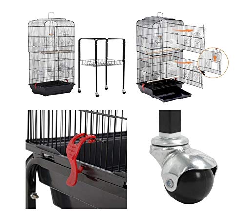 Jaula Para Pájaros Con Ruedas, Diseño De Casa, Perchas, Puertas, Bandejas Excrementos Extraíbles De Metal Para Mascotas, Jaula, Incluye Accesorios Y Soporte Con Almacenamiento (46 X 35,3 X 150,6 Cm
