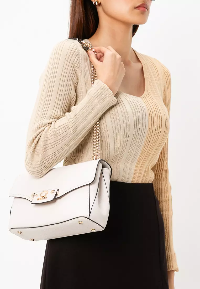 Guess SUNETRA CONVERTIBLE XBODY FLAP - Bandolera - Bone/crema
