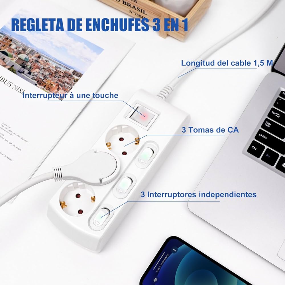Protección de seguridad infantil Todas nuestras regletas cuentan con protección infantil, protección contra descargas eléctricas y una carcasa ignífuga, que permite un uso totalmente seguro. 【Protección de seguridad para niños】: Todas nuestras regletas tienen protección para niños, protección contra descargas eléctricas y una carcasa a prueba de fuego, que permiten un uso totalmente seguro. Regleta Enchufes Comprar EXTRASTAR Regleta Con 5 Enchufes E Interruptor, Cable 3M Para El Hogar Oficina Y Viajes Max 3680w 16a 250v Negro 1pc 1078188970 Regleta 5 Metros El interruptor bipolar actua de disyuntor en el circuito proporcionando mayor seguridad. Carga máxima de 3680 W, cómoda y útil en escritorios domésticos y de oficina, le permite conectar varios dispositivos al mismo enchufe de alimentación 【Cable versátil Muy Duradero】: Obtenga un alcance óptimo con un enchufe en el extremo. Certificación CE: el producto ha sido fabricado cumpliendo las normas europeas, está respaldado por los más altos estándares de rendimiento y seguridad de la industria como el certificado CE EXTRASTAR Regleta Alargador con 3 Enchufes e Interruptor, Cable 1.5... Ladron de corriente Cegapa.es 【Carga máxima】3680 W, conveniente y útil en escritorios domésticos y de oficina; le permite conectar múltiples dispositivos al mismo conector múltiple. 【Certificación CE】: El producto ha sido fabricado cumpliendo las normas europeas, está respaldado por los más altos estándares de rendimiento y seguridad de la industria como el certicicado CE Regleta enchufe extraplano: solución compacta para tus dispositivos