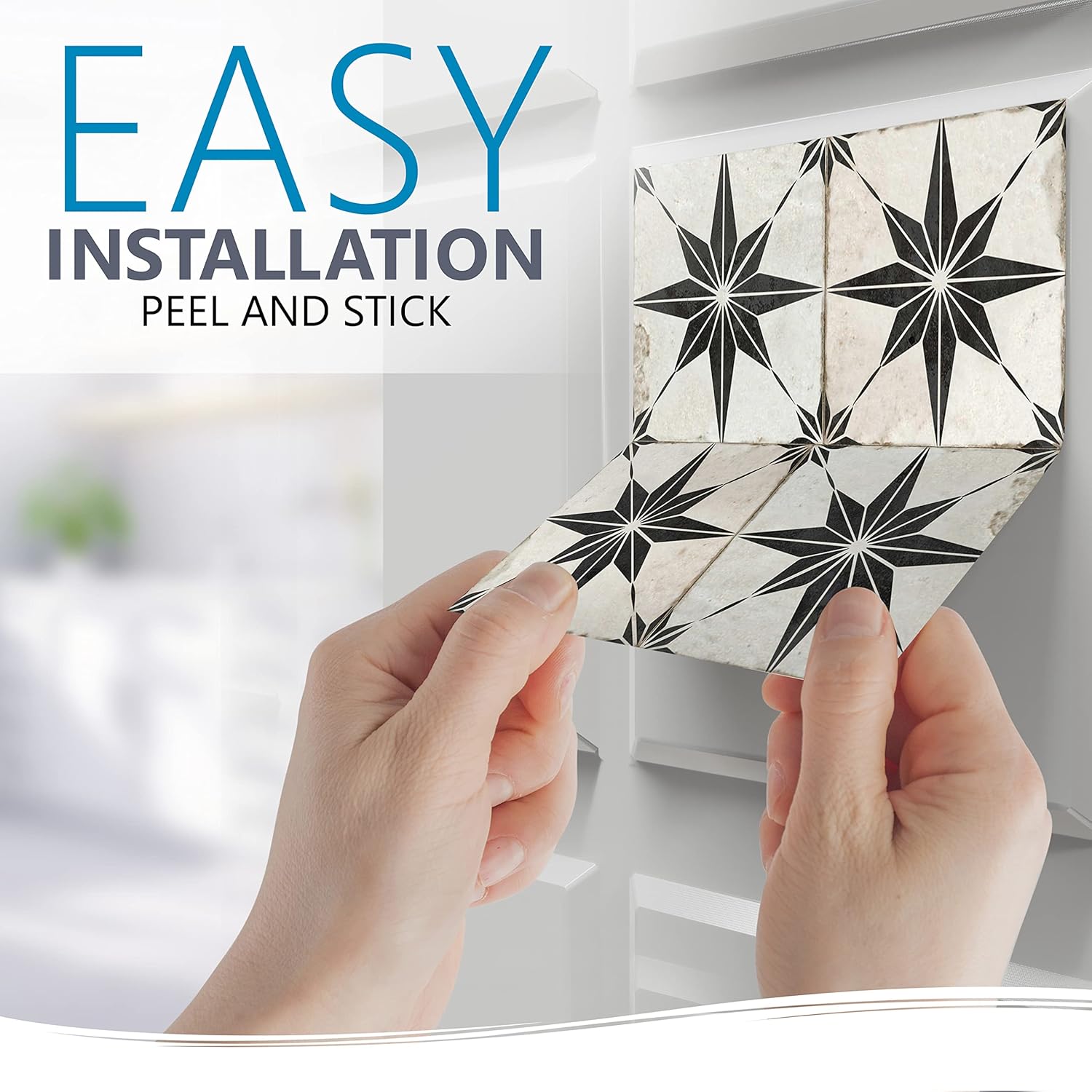 Alwayspon Adhesivo Para Azulejos De Pared Moriscos Para Despegar Y Pegar, Calcomanías De Vinilo Autoadhesivas Para Azulejos De Cocina Y Baño, 4 X 4 Pulgadas, 10 Unidades, T036