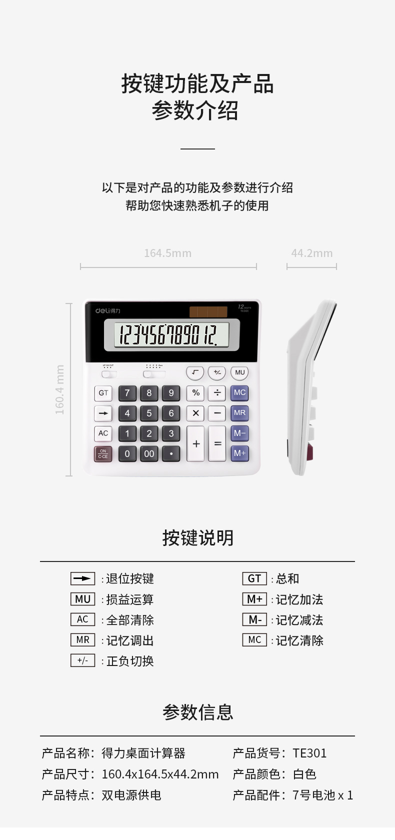 Calculadoras, calculadoras de escritorio funcionales estándar de Splashks, calculadora electrónica de doble potencia con pantalla grande de 12 dígitos (color... Material del producto: plástico. Rose Desk Calculadora básica de oficina - Calculadora de batería solar Especificaciones: - Número de modelo: 1589 - Tipo de batería aplicable: Alimentación dual - STYLE 3: BATTERY & SOLAR DUAL POWER - STYLE 2: 12 DIGITS BIG SCREEN DISPLAY - Nombre de la: Deli - Material: LCD - Fuente de energía: Solar - Estilo: Calculadora de uso general - Dígitos máximos: 12 - COLOR: RED,GREEN,BLUE,WHITE,BLACK Calculadora Deli Escritorio 12 Digitos Azul – El Salvador Sobre este artículo Doble potencia: solar y batería (1 batería AAA incluida), ahorro de energía y conveniente. Ángulo de elevación de 12 dígitos y 30°: la gran pantalla LCD de 12 dígitos y el ángulo de elevación de 30° muestran los números claramente y hacen que sea fácil de leer. 【Botones grandes de calculadora de 10 teclas】Diseño fácil de usar que sigue el diseño del... Calculadora electrónica de 12 dígitos