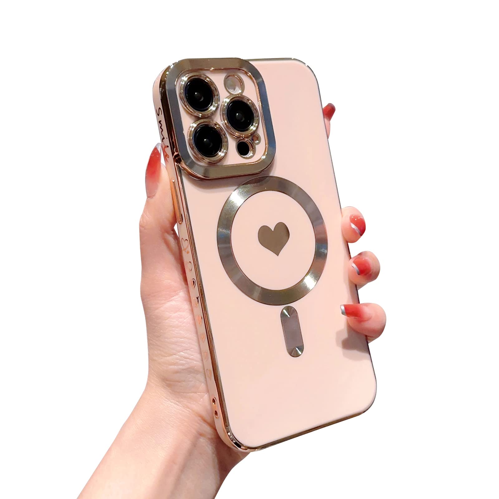 Bonita Funda Magnética Para IPhone 14 Pro Max Compatible Con MagSafe Y Esquinas Reforzadas Elevadas Para Mujeres Y Ninas Diseno De Corazon De Amor