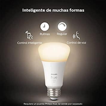 Crea rutinas para automatizar toda la configuración de iluminación de tu hogar inteligente. La marca Philips tiene licencia de Signify, para los productos y servicios de iluminación. Unas lámparas LED de cocina funcionales instaladas debajo de los armarios iluminan la encimera para realizar con seguridad las actividades culinarias. Con un Hue Bridge, puedes añadir hasta 50 luces inteligentes para controlarlas en tu hogar. Con comandos de voz simples se pueden controlar varias luces en una habitación o solo una lámpara. Iluminación para sótanos Debido a la falta de luz natural, es importante incorporar iluminación en esta habitación que en el resto de la casa. Utiliza diferentes tipos de iluminación para el dormitorio de acento para resaltar tus objetos personales o encontrar con facilidad la ropa que te vas a poner por la mañana. Los cuadros, las fotografías o los muebles se pueden acentuar con lámparas de pie o apliques. Iluminación de cuartos de baño Añade un Hue Bridge (se vende por separado) a tus luces inteligentes para disfrutar de todas las características de Philips Hue. Se necesita una iluminación funcional suficiente ante el espejo. Iluminación para el dormitorio Instala fácil y rápidamente tu sistema de iluminación inteligente: Enchúfala y enlázala vía Bluetooth con la app Hue Bluetooth que te permite controlar hasta 10 dispositivos, o hazte con el Hue Bridge y descubre todas las funcionalidades que te ofrece la iluminación inteligente. Luz Blanca Cálida regulable: Las bombillas y los accesorios de iluminación Hue utilizan una luz blanca suave. Iluminación para la cocina La iluminación de pared o los focos de techo pueden acentuar espejos, fotografías o cuadros. Luces Led Pilas Philips Hue – Bobilla LED Inteligente GU10 De 50 W Y Bobilla LED Luz Led Adhesiva Añade hasta 10 luces inteligentes y contrólalas todas con solo pulsar un botón en tu dispositivo móvil. Philips Hue – Bobilla LED inteligente GU10 de 50 W y bobilla LED... Iluminación para el salón Mejores bombillas inteligentes WiFi 2025: comparativa y opiniones Controla las luces mientras estás fuera de casa o añade accesorios tales como sensores de movimiento e interruptores inteligentes. Foco LED dicroica Philips, ayuda a iluminar espacios en los interiores del hogar, además proporciona una luz cálida amarilla de 400 lúmenes y 6 watts de potencia con equivalencia a 50 watts, puede ajustarse su intensidad debido a que es atenuable. Philips es la marca principal de Signify para lámparas, luminarias y otros productos de iluminación, tanto para profesionales como para consumidores. Los apliques se pueden utilizar para acentuar cuadros o esculturas. Bombillas LED inteligentes Con diferentes tipos de formas y bases, nuestras bombillas LED inteligentes pueden adaptarse a casi cualquier lámpara o luminaria de tu hogar, lo que facilita la instalación de luz inteligente en toda la casa