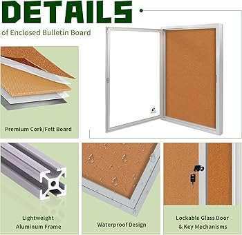 Desbloquea un mundo de elegancia organizada con nuestro tablón de anuncios cerrado con cerradura. La instalación es muy fácil con nuestras herramientas de montaje e instrucciones incluidas, asegurando una experiencia sin complicaciones. VEVOR Gatera para Mascotas, Puerta para Perro y Gato 423x697 mm, Marco... Tablero de anuncios con cerradura para exteriores para mensajes seguros: diseñado como un tablero de anuncios con cerradura, viene con una puerta de bloqueo y... Fabricado con meticulosa atención al detalle, nuestro tablón de anuncios cuenta con un elegante marco de aluminio que irradia modernidad y durabilidad. Entra en un reino de versatilidad ya que este tablón de anuncios transita sin esfuerzo entre entornos interiores y exteriores. Foto acerca Nota amarilla y fijada a un tablero de anuncios de corcho.espacio de copia.concepto de recordatorio. Tablones De Corcho Cerrado Tablero De Anuncios Cerrado, Tablero De Anuncios De Corcho Resistente A La Intemperie Para Exteriores Con Puerta De Bloqueo, Marco De Aluminio Negro Montado En La Pared, Tablero De Mensajes Para Tablon De Anuncios Con Llave Tablero cerrado de corcho Ghent 90 x 60 cm - Pizarron Blanco Pero lo que realmente distingue a nuestro tablón de anuncios es su superficie de corcho autorreparable, un testimonio de su resistencia y fiabilidad. Di adiós a los antiestéticos agujeros y da la bienvenida a un lienzo impecable que se adapta sin esfuerzo a tus necesidades de mensajería en evolución. Utilidad versátil: desde oficinas hasta aulas, cocinas y centros comunitarios, nuestro tablón de anuncios se adapta perfectamente a varios entornos con su diseño versátil.