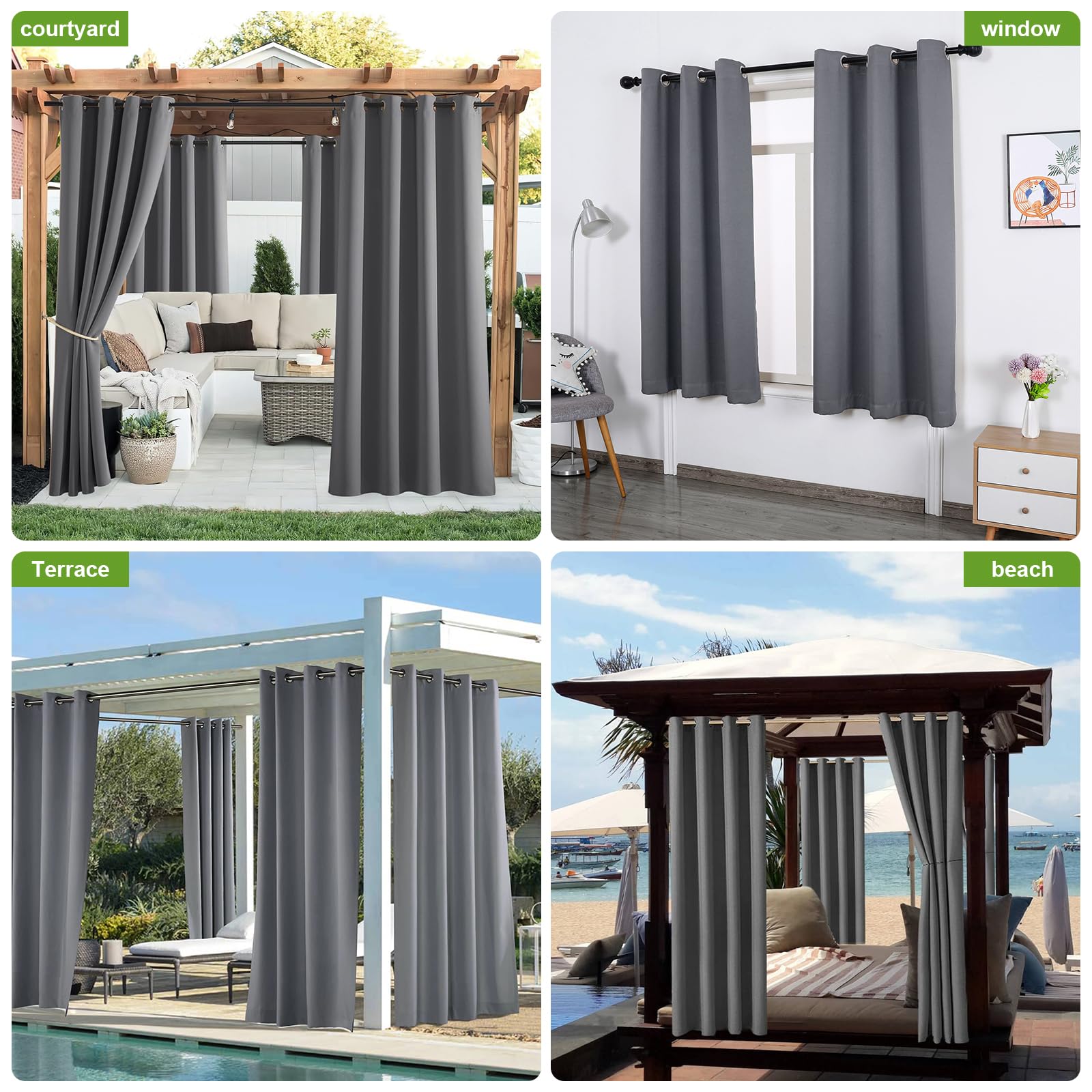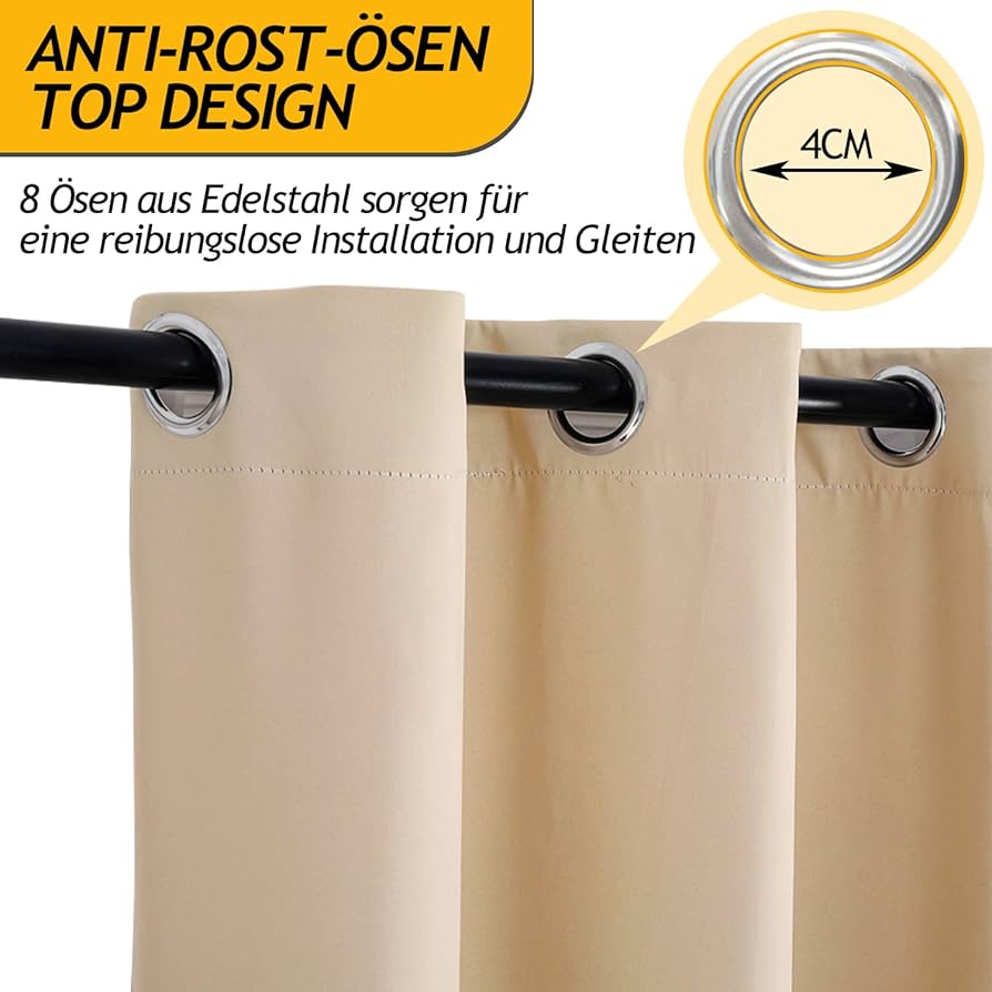 StangH – Cortina opaca para exteriores para patio, ipereable... La seda negra de alta densidad en la capa intermedia aumenta el efecto de sombra y aislamiento térmico de las cortinas de exterior. El diseño de los ojales superiores e inferiores tiene un buen efecto resistente al viento. Esto se consigue mediante un material opaco que convence por sus propiedades resistentes a la abrasión, indeformables y fáciles de limpiar. Cada ojal cuenta con tecnología antioxidante para que parezca nuevo después de fuertes vientos y lluvias fuertes. Poliéster, tela impermeable: Las cortinas para exteriores están hechas de tela de poliéster impermeable, por lo que se pueden usar en días lluviosos o nevados, pueden ser impermeables y mantener secos los muebles de su patio Cortina Exterior Impermeable A Medida | Protección & Estilo Las cortinas de exterior no solo son decorativas, sino que han demostrado ser fiables como protección visual y solar. Cortina premium outdoor hecha a medida – acabado texturizado, repelente al agua y herrajes inoxidables. ¡Descúbrelo Además, el forro interior hace que las cortinas sean más duraderas y fáciles de cuidar., Tratamiento impermeable. Las cortinas opacas se pueden gracias a los ojales de metal existentes (diámetro interior: 4 cm) directamente en la barra de cortina, simplemente desembalar, colgar y disfrutar., Múltiples funcionalidades. Esto no solo protege sus muebles de las quemaduras solares, sino que también protege su privacidad Tanto la parte superior como la inferior están diseñadas con ojales antioxidantes para lograr un buen efecto a prueba de viento Cada panel cuenta con ojales superiores e inferiores de acero inoxidable plateado que se adaptan a la mayoría de barras de cortina estándar para un fácil montaje y desmontaje. Tratamiento impermeable de doble cara, duradero, puede permanecer hermoso bajo el sol, la lluvia y el viento. Cortina Opaca Para Exteriores, Cortina Impermeable Para Jm Advertencia: Debido a que se cose manualmente, el tamaño puede presentar un margen de error de +/- 1 a 3 cm. Seque las planchas bajas y frías según sea necesario Sin embargo, los diferentes monitores pueden causar colores ligeramente diferentes, lo que es difícil de evitar., Tecnología Triple-Weave. Tamaño y color Nuestras cortinas opacas se venden en juegos de 1 pieza y están disponibles en 31 tamaños estándar y 24 colores., Fácil de montar. Nuestras cortinas de exterior están provistas de ojales en la parte superior e inferior para evitar que las cortinas se muevan.